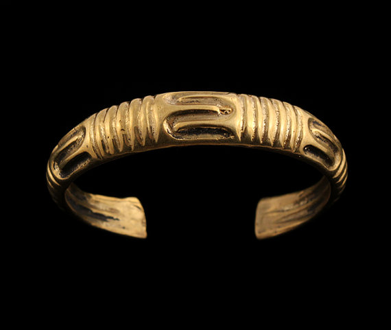Viikingiaegse käevõru koopia. Selliseid toekaid ja rikkalikult kaunistatud käevõrusid kanti keskajal enda jõukuse näitamiseks. Kasutati erinevaid joonte ja kurvide kombinatsioone, et moodustada sümmeetrilisi mustreid. Jooned on sügavale õõnestatud, et vähendada kaalu, kuid säilitada siiski rasket üldmuljet. Käevõru kaalub 45 g.